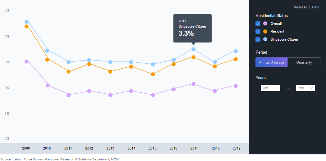 The unemployment rate refers to the unemployed as a percentage of the labour force (also known as the economically active population). Persons are counted as unemployed, if they are not working, but are actively looking and available for work. Unemployment Rate and Number give us a quick gauge of the health of the labour